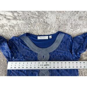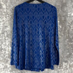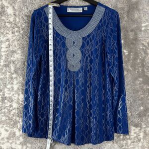 Simonton Says Size S Embossed Geometric Scoop Neck Stretch Top Blue Long Sleeve