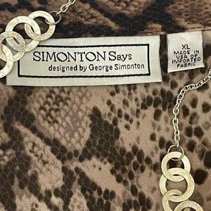 Simonton Says Snakeskin Brown Metalic Tunic Top SZ XL