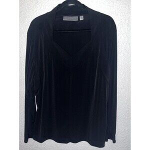 Simonton Says V Neck Long Sleeve Top Women Sz 1X Black