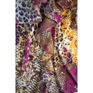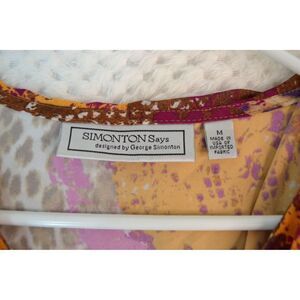 Simonton Says Women's Medium Pink Animal Print Ruffled Short Sleeve Blouse