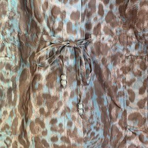 Simonton Says by George Simonton, Blue/Brown Leapard Print Raincoat, Size L