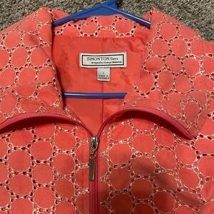 Simonton Says jacket Women’s Large lightweight w/Liner zipper front Coral Orange