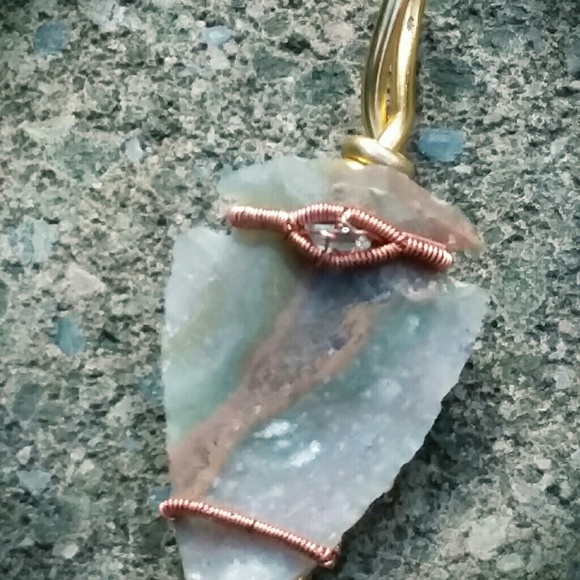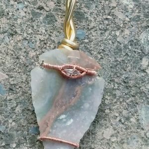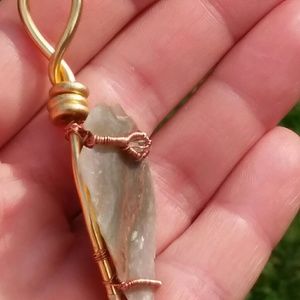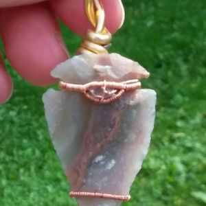 This Arrowhead pendant is wrapped in all copper wire, with a baby quartz in the middle of an awesome wrap.
