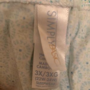 Simple Basics green and blue patterned pajama pants with lace accent on bottom size 3x