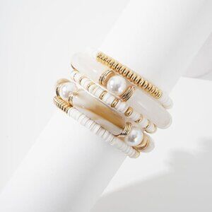 Simple Beaded Gold Bangles Bracelet Chunky Bamboo Tube Curved Stacking Clear Acr