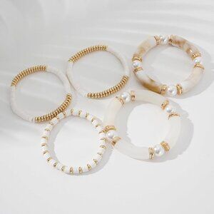 Product details Item display length 6.6 inches Material Acrylic Metal type Brass Clasp type No clasp type Chain type Bead Chain Gem type No gemstone About this item Bangle Bracelet: Handmade to ensure high quality. Suitable Size Bracelet for Women Wearing: The inner size of the bangle bracelet is about 7.0". These bracelets are connected by an elastic cord, SO, If your wrist size is between 6.5-8.0", they are suitable for your wrist. Acrylic Tube Bamboo Resin Bangle Bracelet Material: Th
