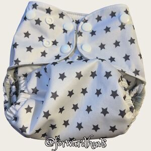 This is a fantastic reusable cloth diaper cover by simple Being which fits baby’s 10lbs - 40lbs or is better known as a one size fits all diaper. There are no inserts with this diaper cover but the cover alone is ADORABLE.