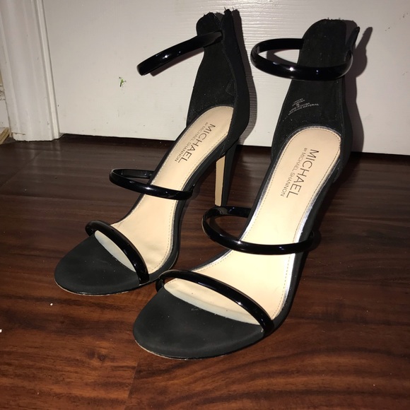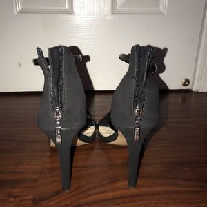 Heel has 3 straps along front and zipper in the back. Has signs of wear on the bottom but has only been worn a few times.