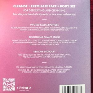 New, in the box, never opened it. Kids got it for me as a bday gift, but I don’t need it. Kit includes: 2 facial sponges, heels stone, body sponge. Distributed by Paris UK, made in China