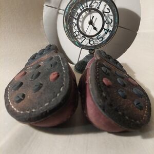 Simple Brown Shors Size 8.5 Leather Mule Clogs Solid Durable Slide On Chunky