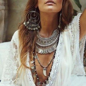 Bohemian avant garde jewelry created with organic materials consistently including antique brass, bone, porcupine quills, feathers and crystals in the designs.