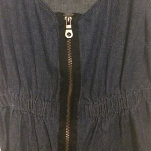 Easy to match! Medium size. All denim dress. Zips in the front with elastic waist.