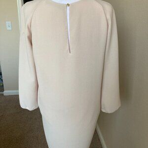 Simple dress you can dress up or down, lined with back button. I get compliments every time I wear it.