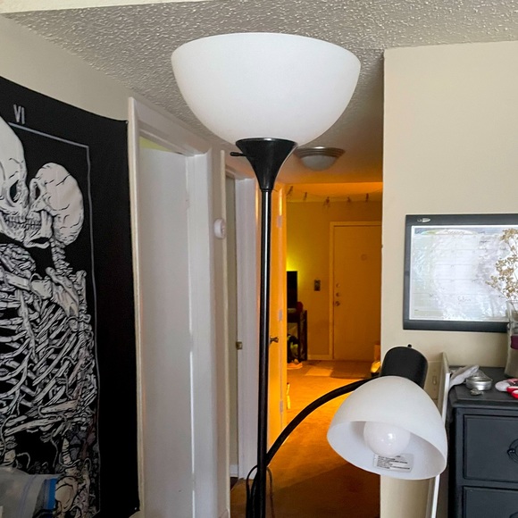 New, barely used dimmable floor lamp. Simple black design can match any decor