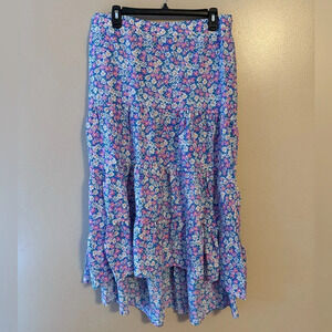 Simple Fun Womens Floral Tiered High Low Midi Skirt Summer Spring XL NWT