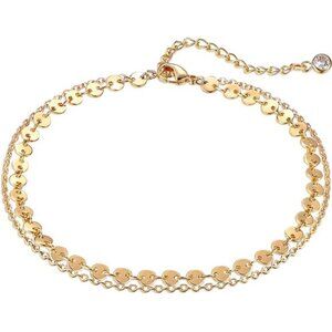 Simple Gold Chain Anklet,14kGold/Silver Plated Dainty Disc Evil Eye Summer Beach