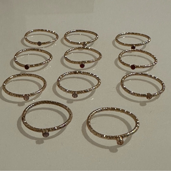 11 gold rings Different colored gem stones on each of them Unsure of size but guessing around 8.5