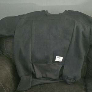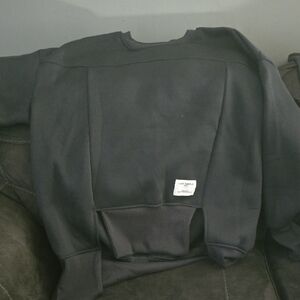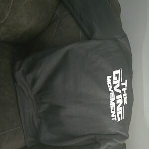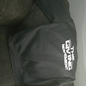 Soft black ribbed material with a white label. Blue text adds a subtle contrast.