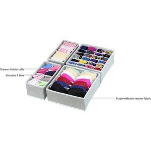 The item includes 4 bins: 6 cell(scarves, ties), 8 cell(underwear, briefs, ties), 7 cell(bra), 24 cell(socks)
