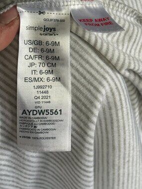 Simple Joys by Carters gray and white striped sleeveless sleep sack in size 6–9 months. Soft and comfy for safe, easy sleep. Fast Shipper.