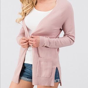 Pink simple long sleeve cardigan with pockets. 50% Viscose, 30% Polyester, 20% Nylon. Fits true to size! This is a new boutique item. Price is firm. Thanks!