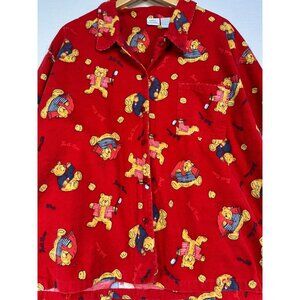 Simple Pleasures Womens Teddy Bear Flannel Pajama Set Size 2X Red Cozy