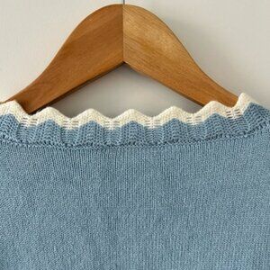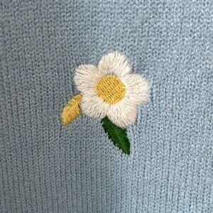 Simple Retro Blue Embroidered Daisy Cardigan Sweater NWT Size L