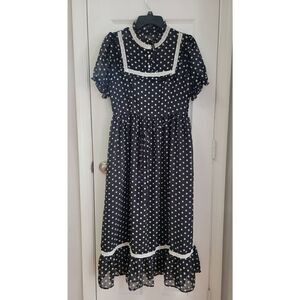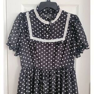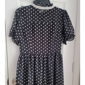 Simple Retro Polkadot Prink Mock Neck Dress S