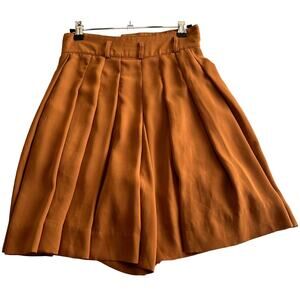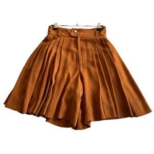 Simple Retro Shorts Women Size Small Brown High Waisted Wide Leg Pleated Pockets
