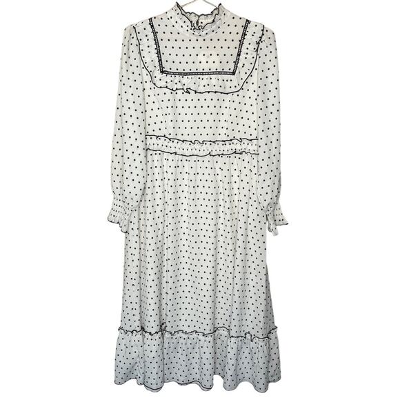 Simple Retro long sleeve women's polka dot dress size medium
