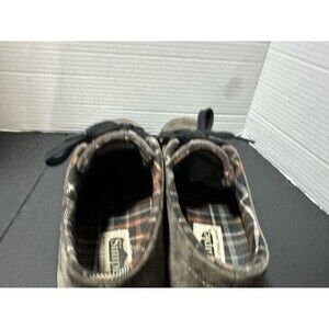 Simple Shoes Men's Standard Issue Suede Green Sneakers, size 11.5. These shoes feature a classic lace-up design with durable green suede uppers and contrasting plaid interiors. The rubber soles provide excellent traction, perfect for everyday casual wear. These sneakers are in Good pre-owned condition with minimal signs of wear.