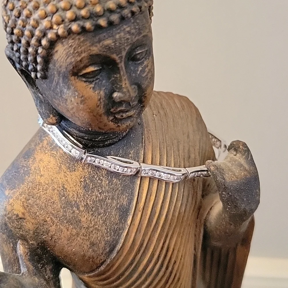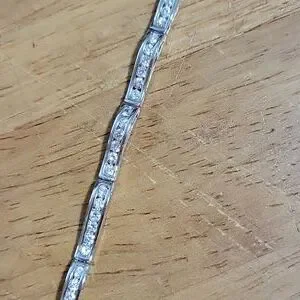 Perfect condition! Silver links with rhinestones, modern clean and simple. Good attachment, hook with clasps for extra hold. 6.5" long. Could use for dressy event or add to vasual bracelets for a pop of bling.