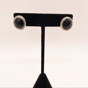 Simple Silver Scroll Design Earrings with Black Beaded Cabochon