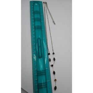 Simple Silver Tone & Black Faceted Oval Teardrop Y-drop Y2K Fashion Necklace