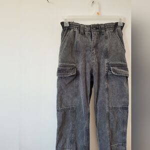 Super cute cargo style Baggy jeans in a washed out black/gray denim. High waist, straight leg. Great condition. Tagged size 3/26 actually measures 38 inches long 27 inseam (11 rise) 29 waist.