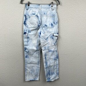 Simple Society Baggy High Rise Cargo Utility Jeans Bleach Wash Sz 3 26