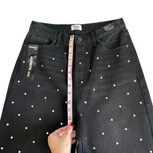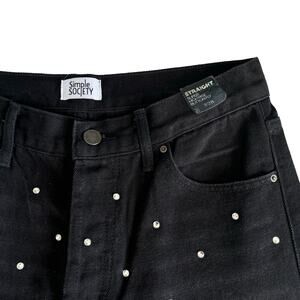 Simple Society Black Rhinestone Straight Leg Super High Rise Button Fly Jeans