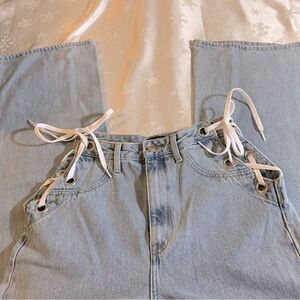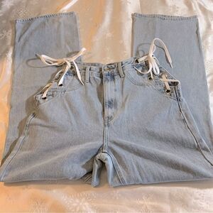 Simple Society Denim Jeans Side Waist Tie Straight Leg Juniors Sz 9 Gorgeous
