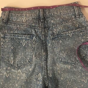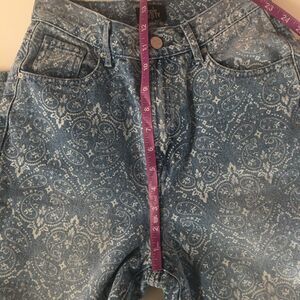 Cool paisley print mom jeans in a medium-light blue wash! These look great in the summer with a cute crop top, sandals, a pair of sunglasses, and a tote bag! In excellent condition! Approximate measurements shown in pictures. I forgot to take a picture of the size, so please refer to measurements! Feel free to ask questions or make an offer!