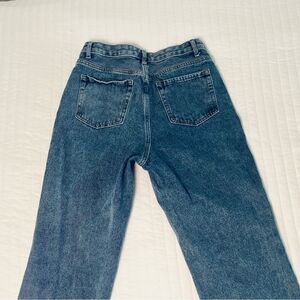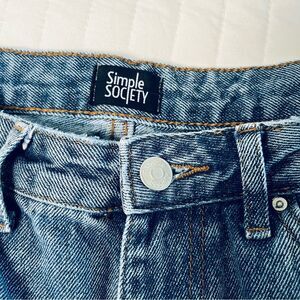 Simple Society size 9/29 faded blue wash boho super high rise has zip up button front closure.