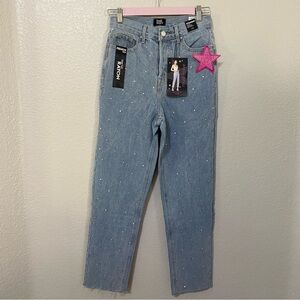 Simple Society Rhinestone Super High Rise Straight Jeans Light Wash