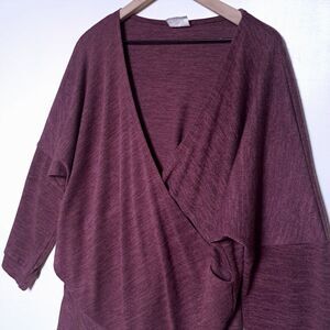 Simple Suzanne Betro Pullover Surplice Sweater Wrap Women Burgundy 2X Plus