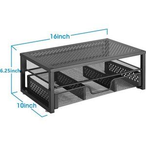 Simple Trending Monitor Stand raises your monitor up to eye level for comfortable ergonomic viewing experience, focuses on relieving the strain of the neck, shoulder and back and enhancing work efficiency. Space for keyboard to slide underneath or pull out sliding drawer for adding more extra storage for large items. Non-skid rubber feet keep your stand stable and protect your desktop surface. Aim to bring a better shopping experience to each customer. Specifications: Material: Metal Dimensions: 16"W x 10"D x6.25"H Color: Black Package Contents: 1 x Rack 1 x Assembly Manual Simple Trending Note: Don’t sit on the product or put overweight items on it