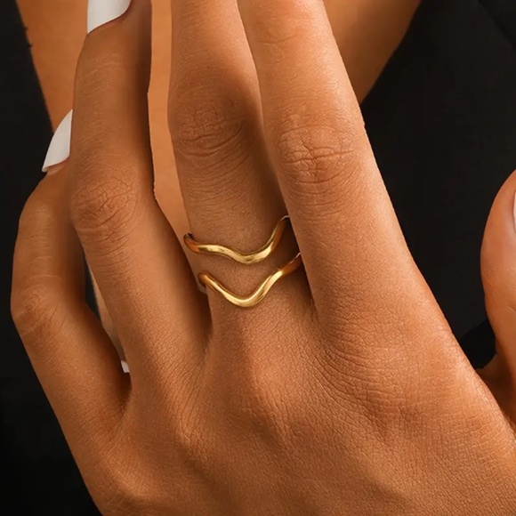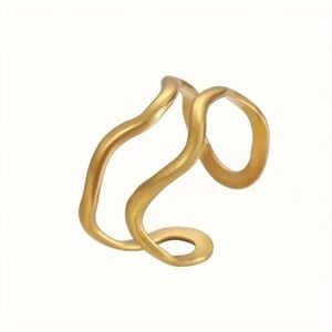 The Simple Water Ripple Line Open Ring by Umai jewelry is a square-shaped ring made of stainless steel with a gold color. It features a bohemian theme and is adjustable in size, making it suitable for various occasions such as Christmas, birthday, or Valentine's Day. This stylish ring is perfect for those looking for a unique and versatile accessory to add to their collection.
