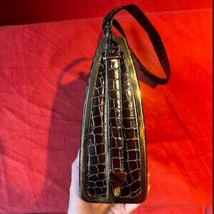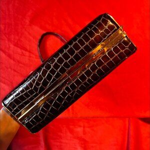 Simple and Timeless Retro Croc Bag- Metal Wavy Gold Frame- See pics for effect!