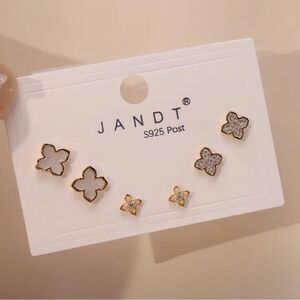 This exquisite earring set showcases a delicate four-petal flower design, offering a touch of elegance and versatility for any occasion. Crafted with attention to detail, these earrings are perfect for adding a subtle sparkle to your everyday look.