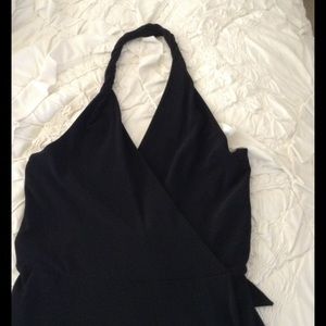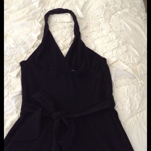 Extremely comfortable, easy to wear halter dress. Material is polyester and spandex. Not too tight and slinky and not see through. I love this dress! I felt like a ballerina when I wore it.