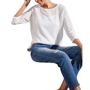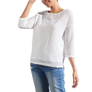 Simple by Suzanne Betro Ivory Stripe Sheer Boatneck Tunic Size L