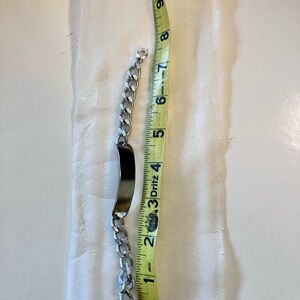 Great for adding a little shine to the wrist! Not sure of the metal, but I don’t think it’s silver. Pretty light weight.