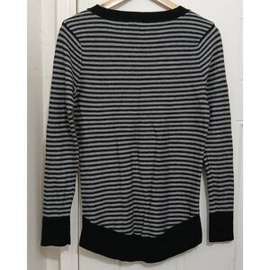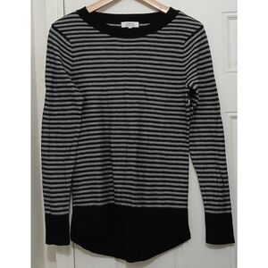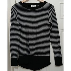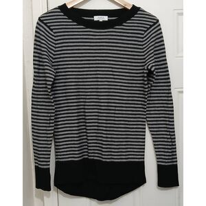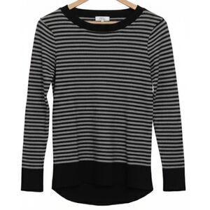 Simple laguna womens medium sweater silk cashmere stripe gray black preppy classic timeless